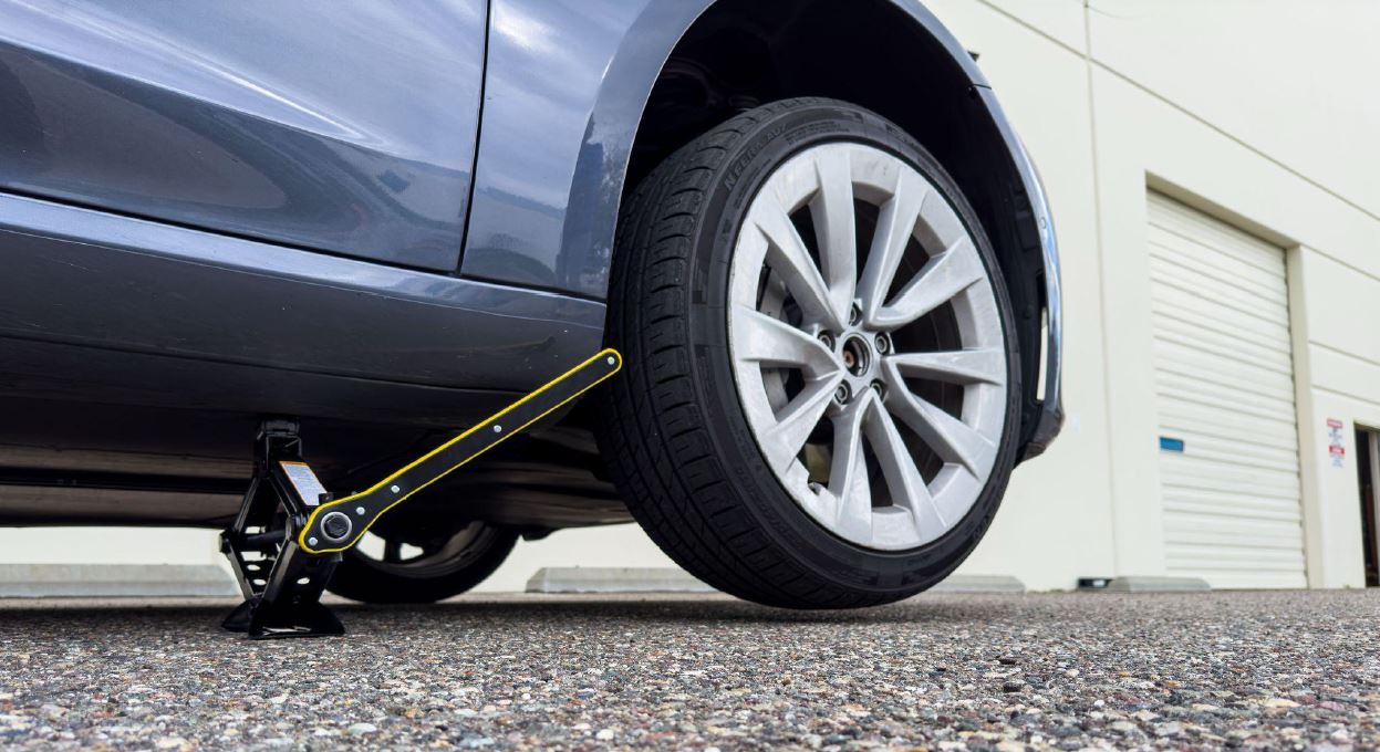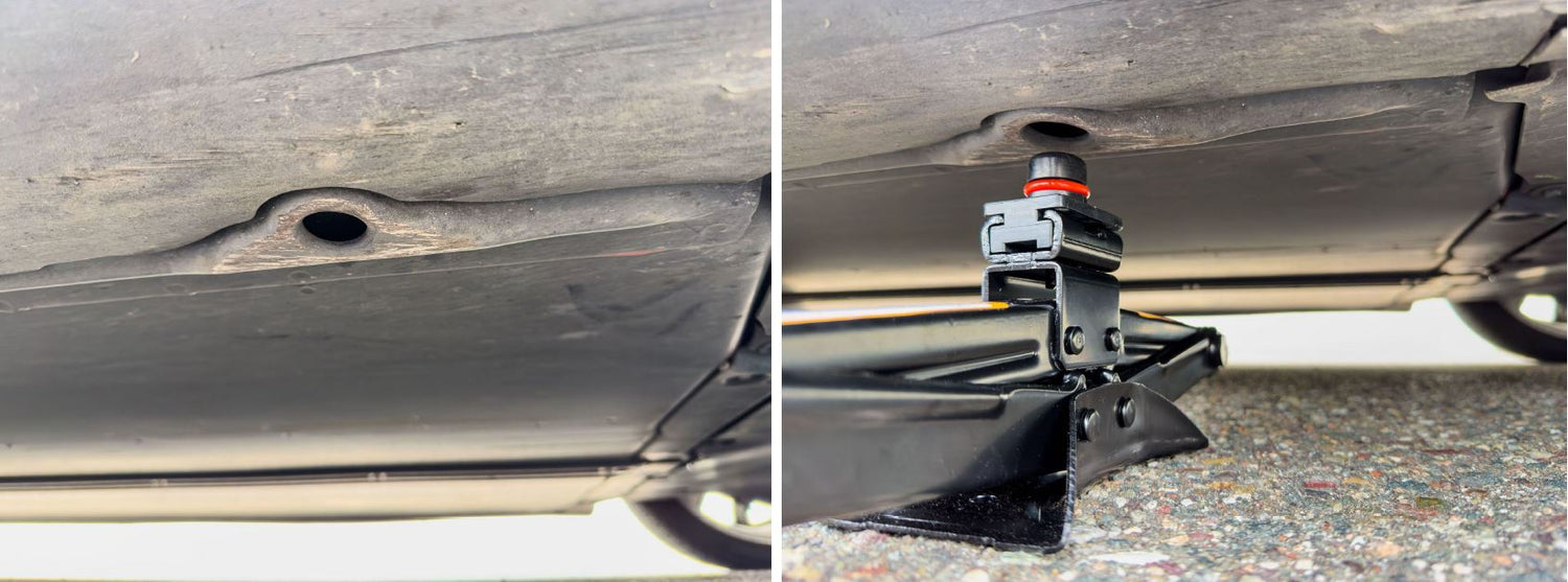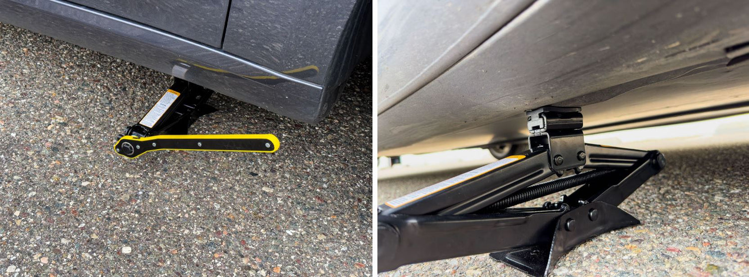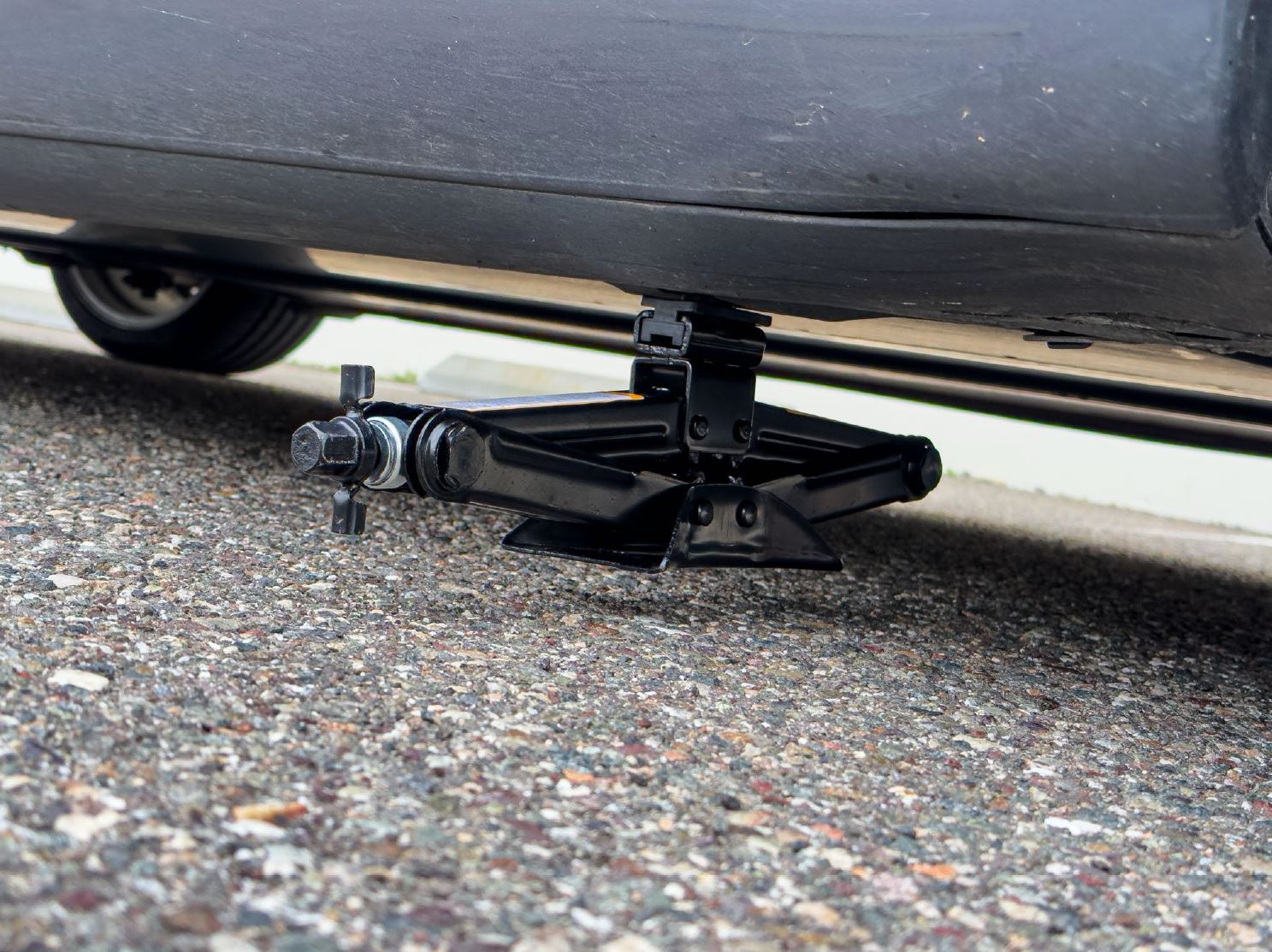 1. Look under your vehicle and locate the jack point and line up the jack with the opening.