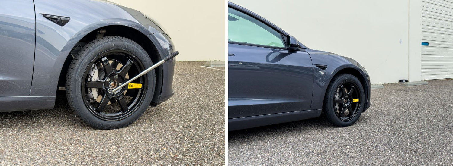 For vehicles with non-OEM Tesla wheels - check the lug nut seat for compatibility. Mismatching lug seat between your lugs and our wheel may result in hardware loosening while driving, resulting in damage/injury.