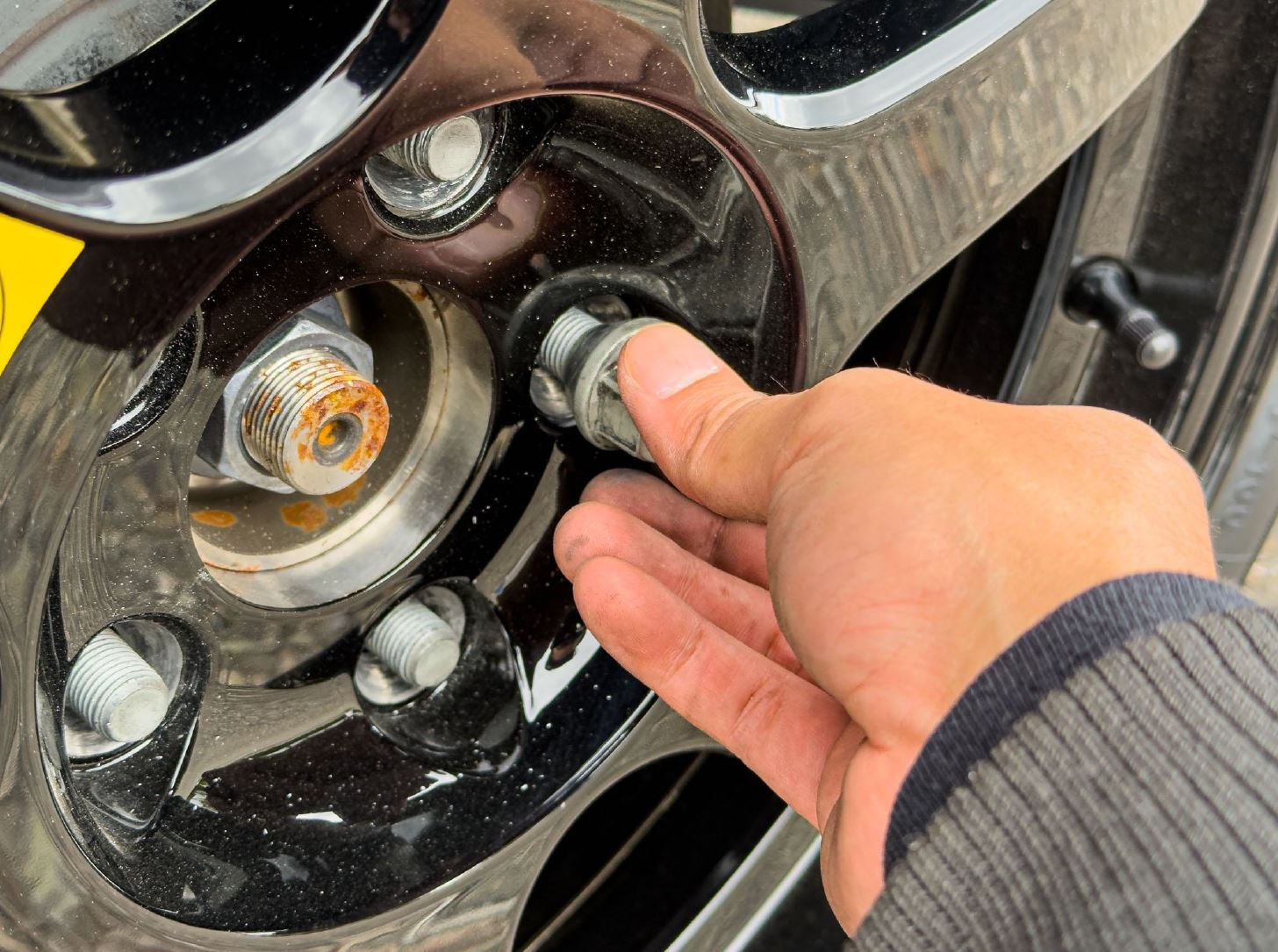 7. Begin securing the spare to the vehicle by hand tightening each of the lug nuts onto the studs in a star pattern.